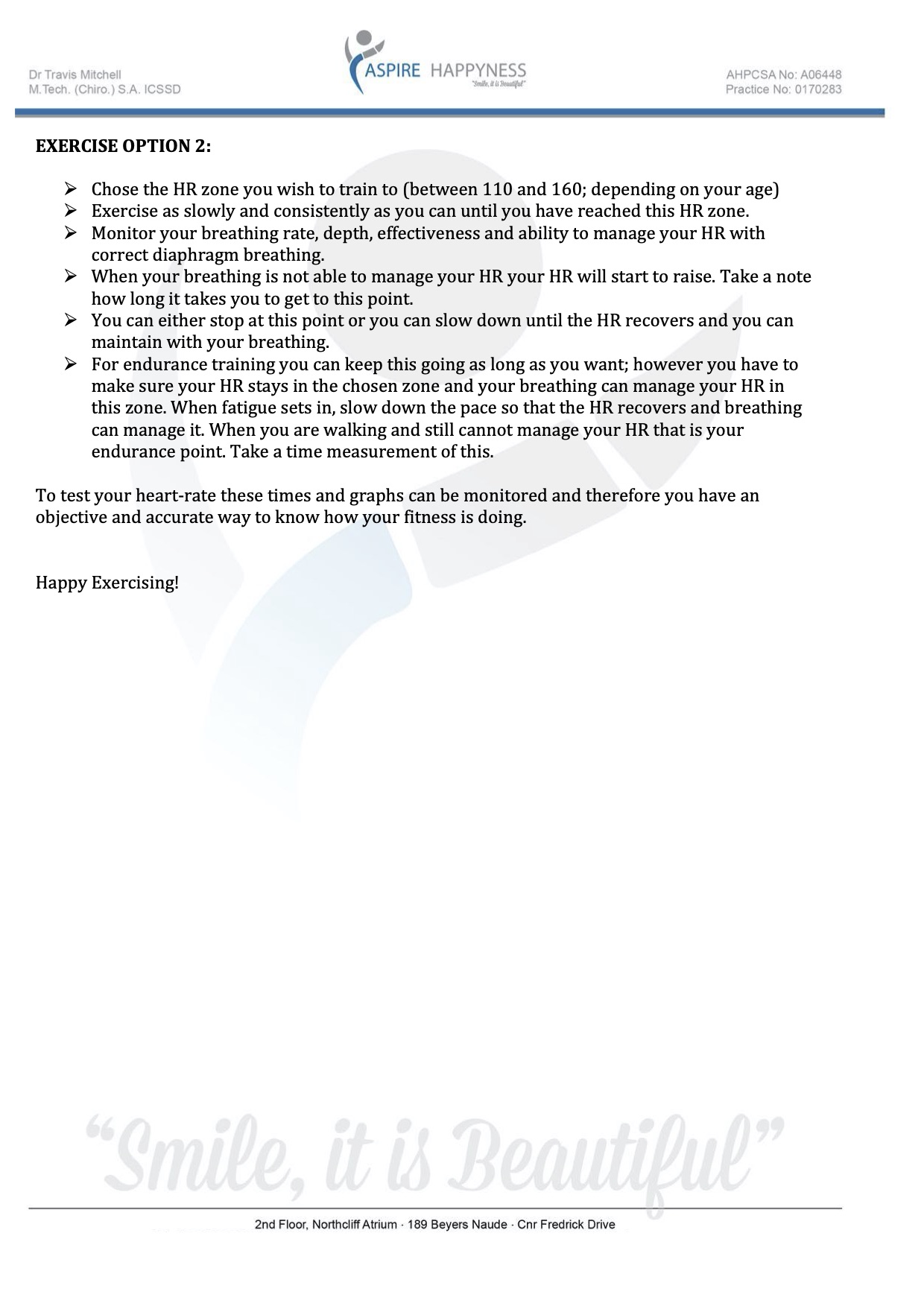 Let me know how I can support your program of health.